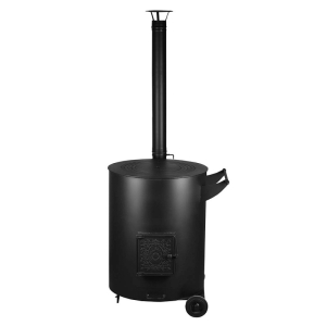 Печь 2в1: для сжигания мусора и казана (двухстенная) с чугунной дверцей, 240 л.